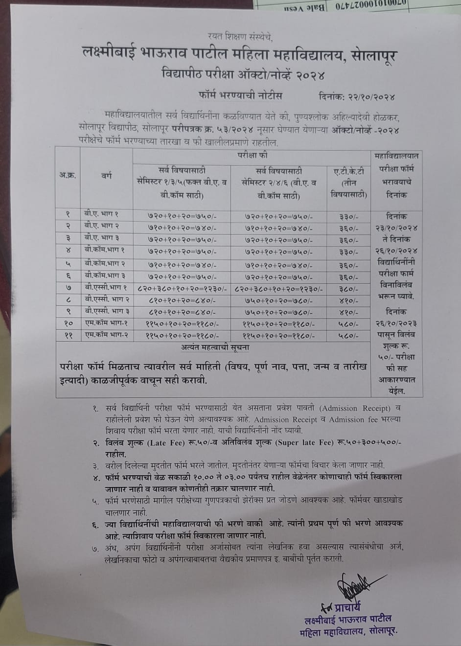 Notice: Exam form Oct/Nov-2024