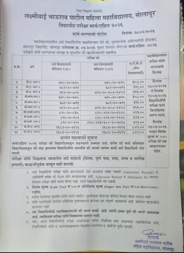 सूचना: परीक्षेच्या तारखात बदल झाल्याबद्दल...
