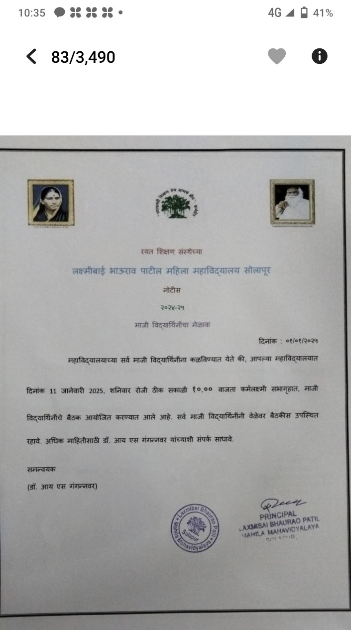 सूचना: माजी विद्यार्थिनी मेळावा- 2025