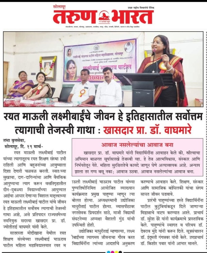 LAXMIBAI BHAURAO PATIL MAHILA MAHAVIDYALAYA, SOLAPUR